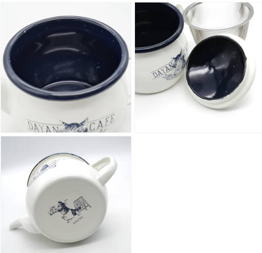 新潟県燕市でホーローの美しい光沢の表面にひとつひとつ絵柄を丁寧に手で貼り施しているホーロー製品です。